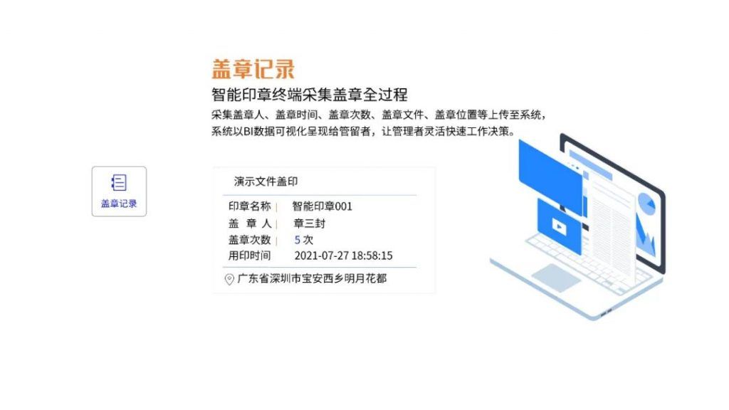 “管理成本低、效率高、数据0丢失”是智能印章的显著特点。